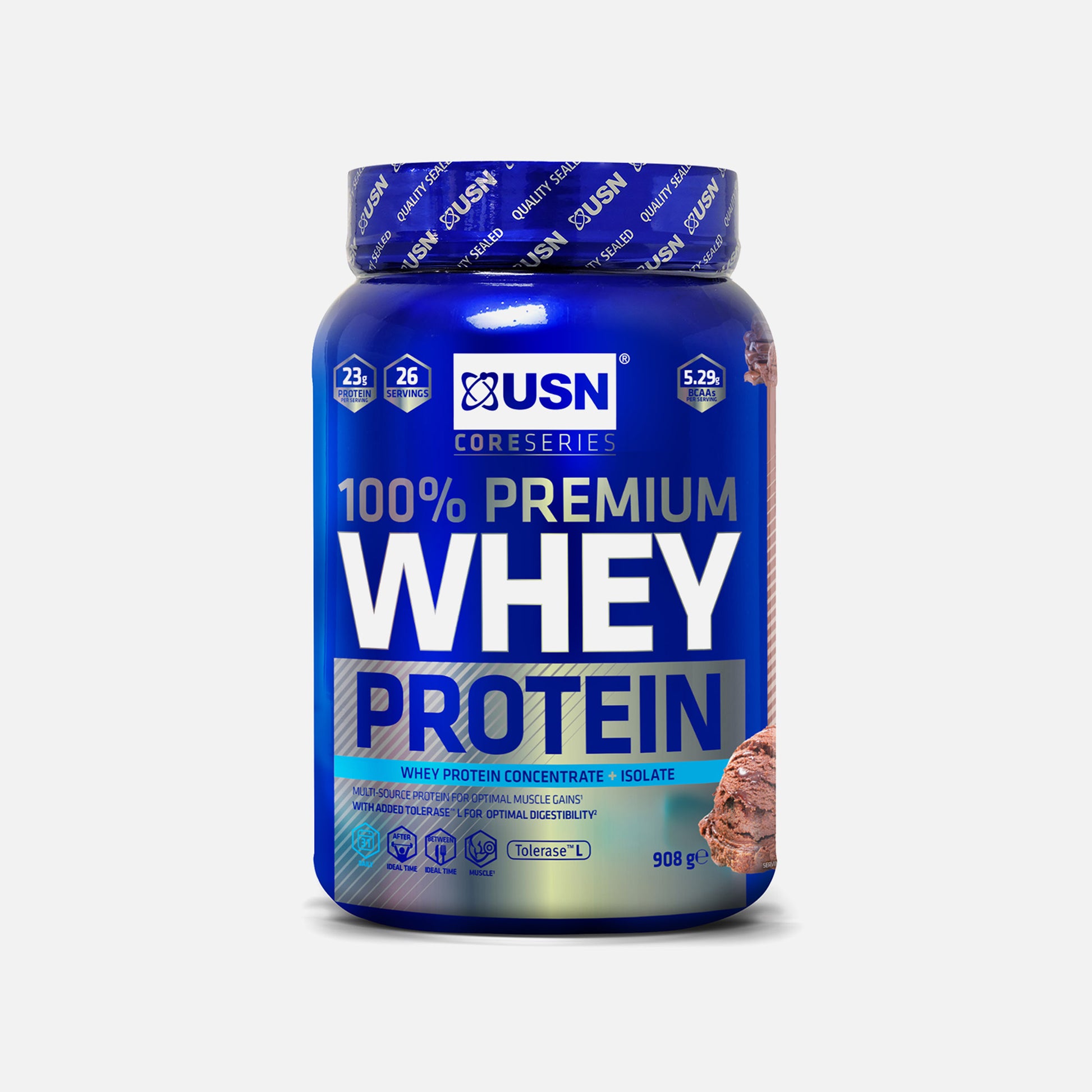 USN 100% Premium Whey Protein contains a blend of isolate and concentrate whey.It is designed to be consumed at any time of day to contribute to daily protein requirements and is the perfect quick-release protein for post-workout muscle growth and support.